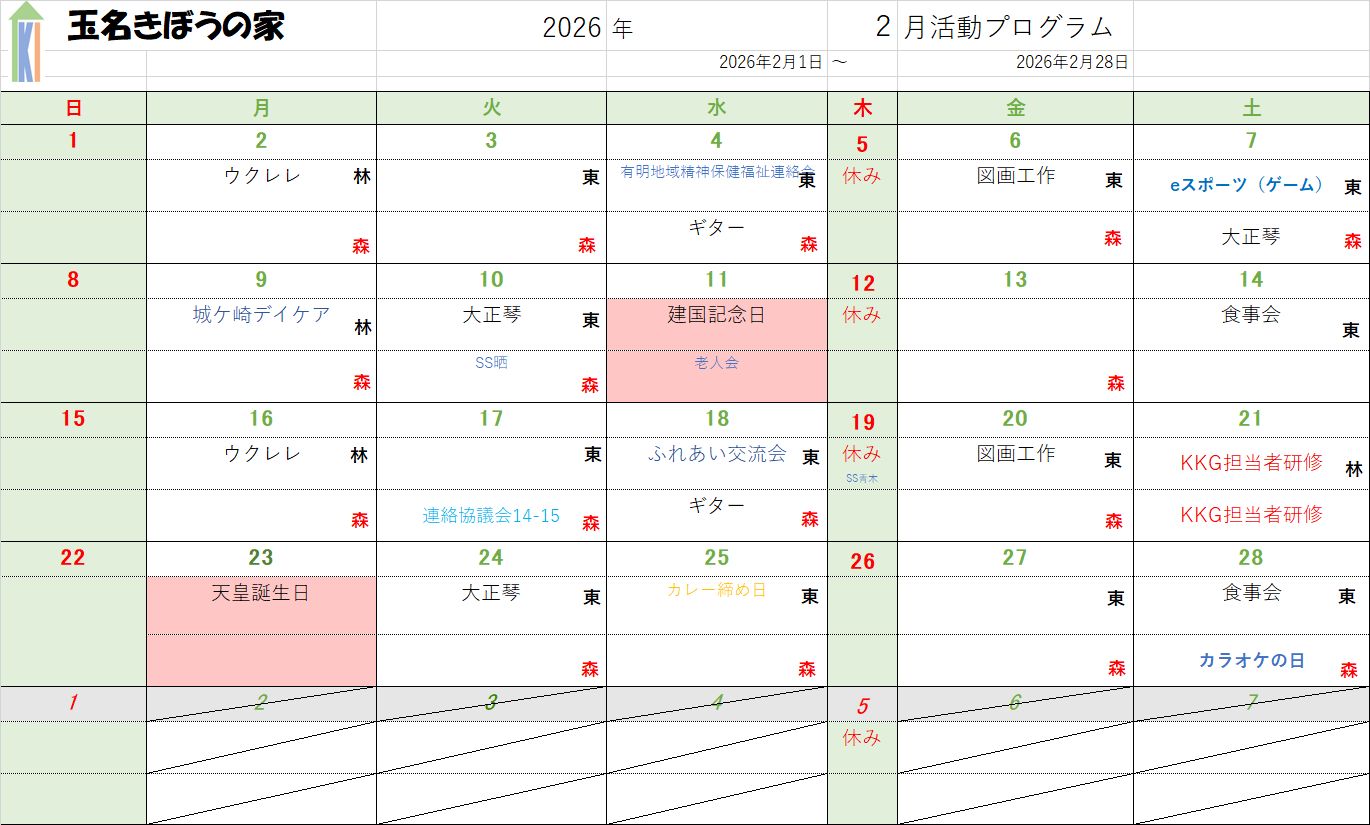 この度改めて利用者さんのお話を聞き、新規プログラムを実施することにしましたので、ぜひ気軽にご参加下さい。