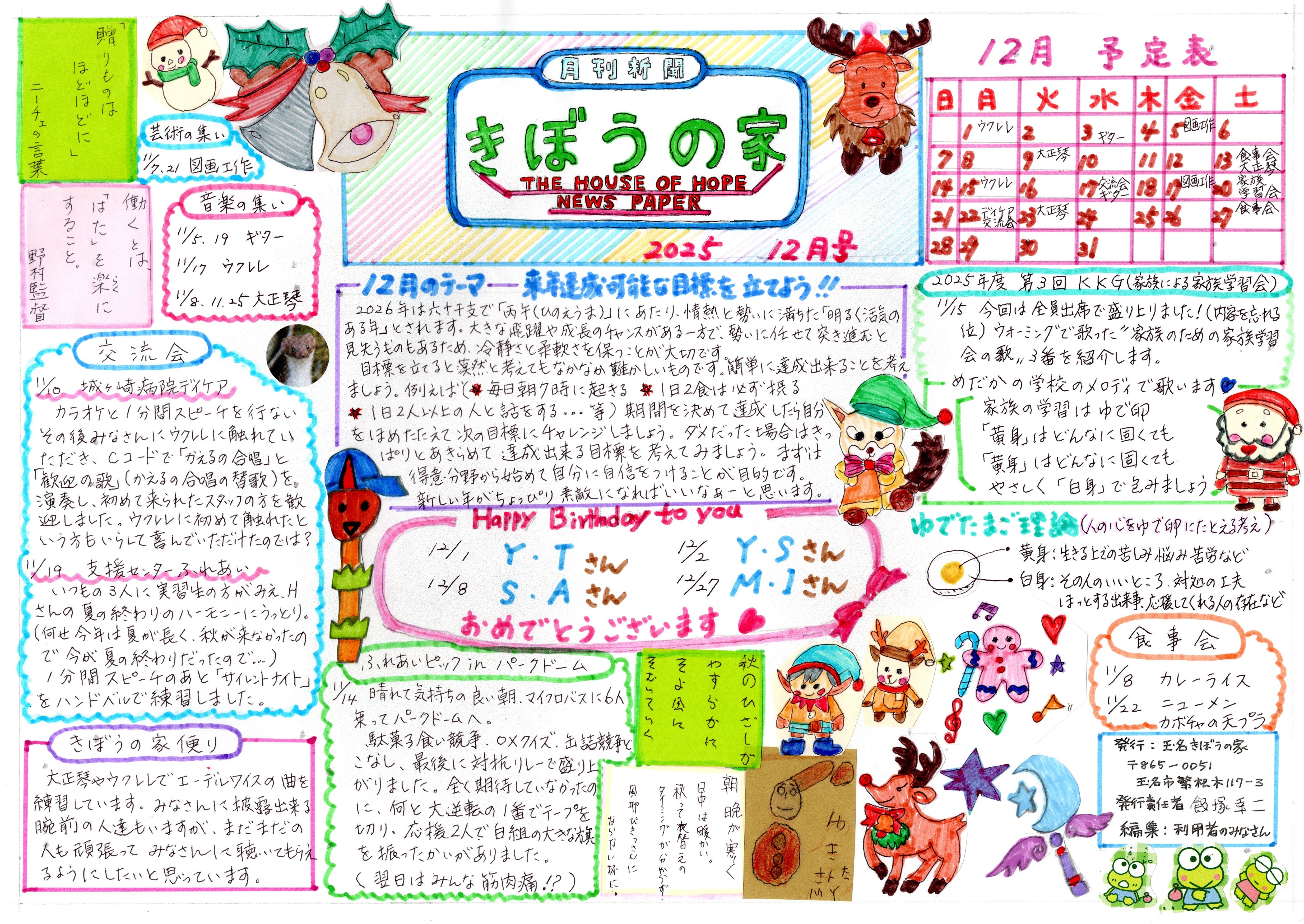 きぼの家ニュース12月号ができました。
